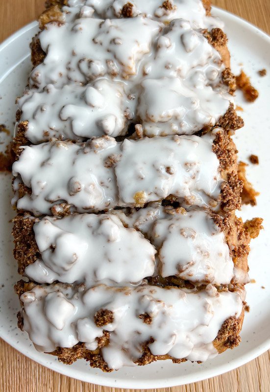 while this bread is delicious on its own, i’m a firm believer that a little glaze or frosting can elevate any cinnamon-infused treat.