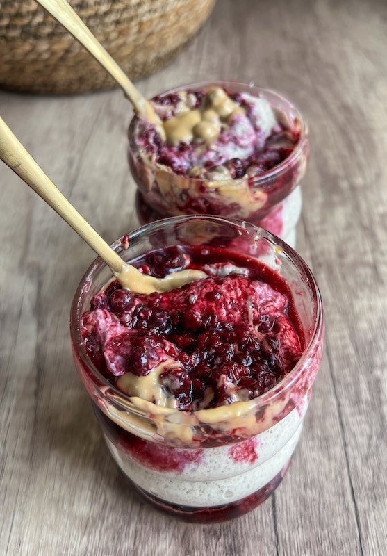today, i’m excited to share with you a recipe that is equal parts easy, delicious and nostalgic: Blended Overnight PB and J Chia Oats.