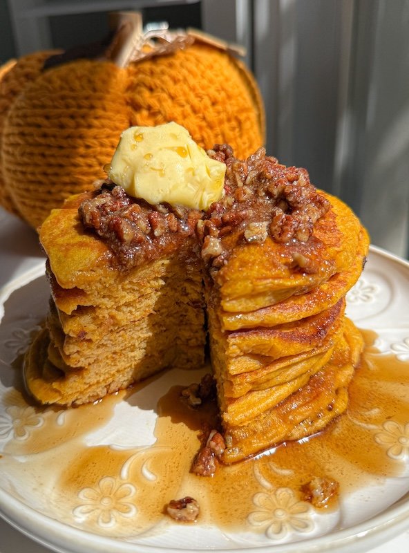 Healthy Pumpkin Spice Greek Yogurt Pancakes