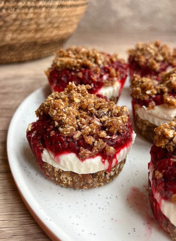 Vegan Raspberry Bliss Date Cheesecakes
