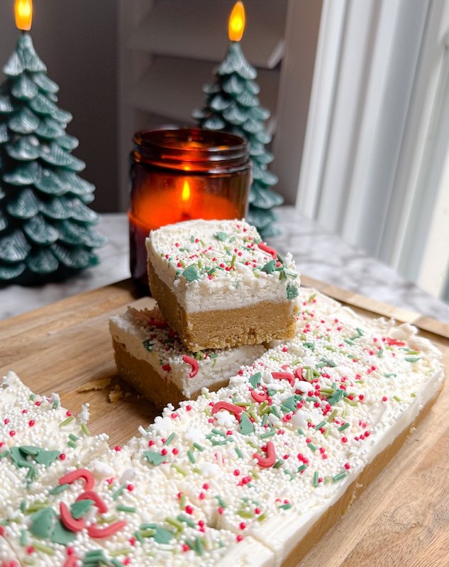 No Bake Protein Tahini Sugar Cookie Bars