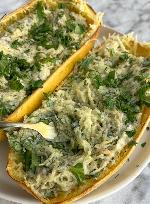 Plant-Based Spanakopita Baked Spaghetti Squash