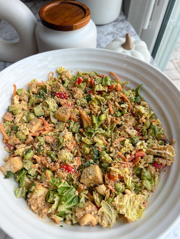 Veggie and Protein Packed Salad with Spiced Peanut Dressing