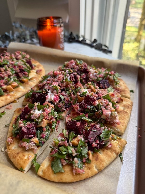 Easy Roasted Beet and Goat Cheese Salad Flatbreads