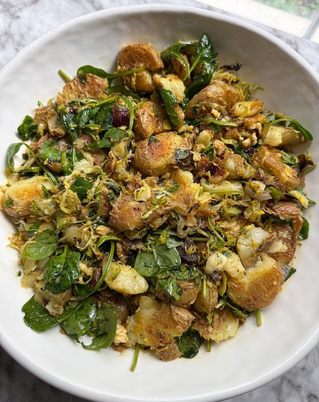 Hearty Smashed Potato Salad With Greens and Curry Vinaigrette
