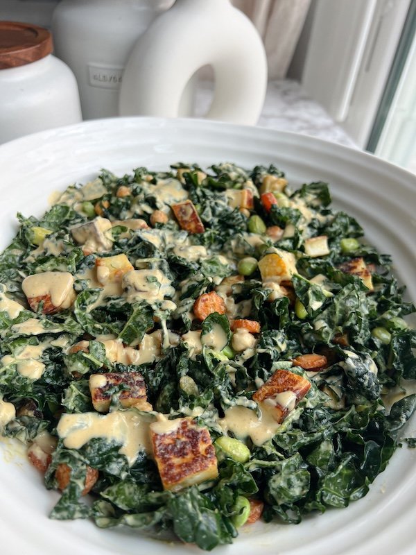 Delicious Kale & Halloumi Salad With Creamy Curry Dressing