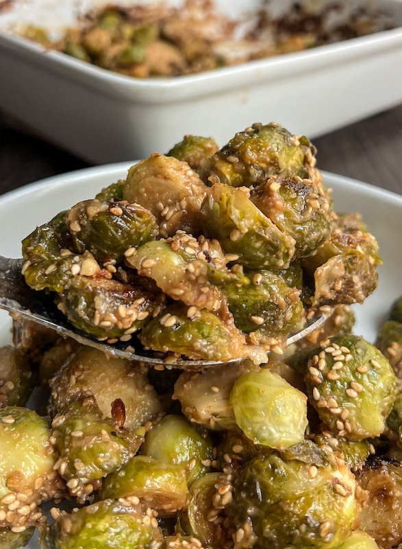 Sticky Peanut Miso Maple Glazed Brussels Sprouts (Oil-Free!)