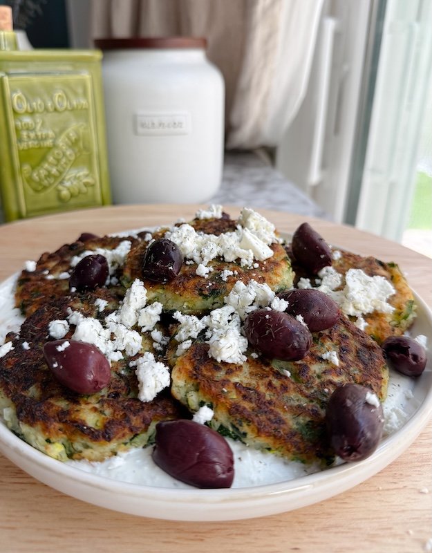 Gluten-Free Kolokithokeftedes With Whipped Feta Yogurt Dip