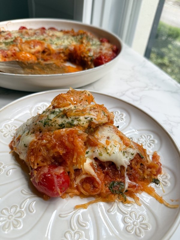 Margherita Pizza Inspired Spaghetti Squash Bake