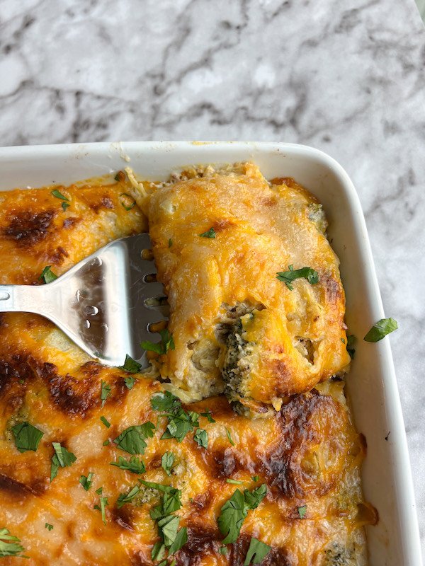 Healthy and Cozy Broccoli Cheddar Spaghetti Squash Bake (Plant-Based!)