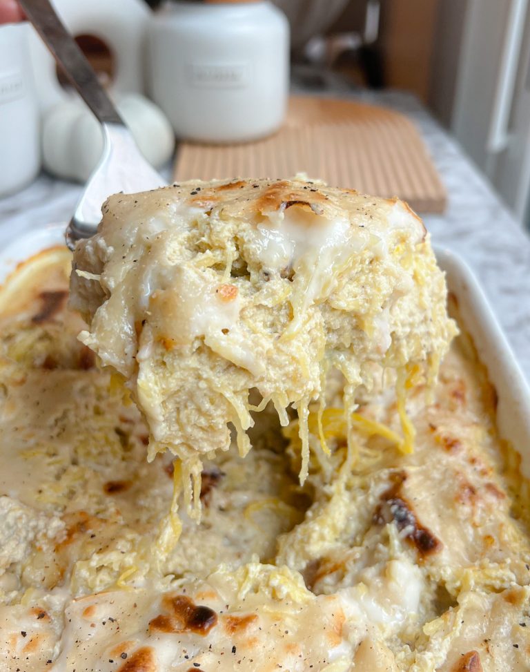 Lower Carb Cacio e Pepe Spaghetti Squash Bake