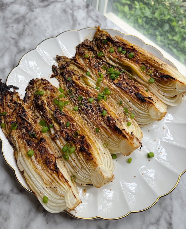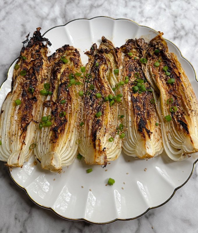 this is one of those recipes that feels quietly luxurious while still being incredibly simple. tender napa cabbage, pan-seared for flavor, roasted until soft and silky, then finished with a buttery miso sesame glaze that makes the whole dish feel deeply satisfying without being heavy, bland, or boring.