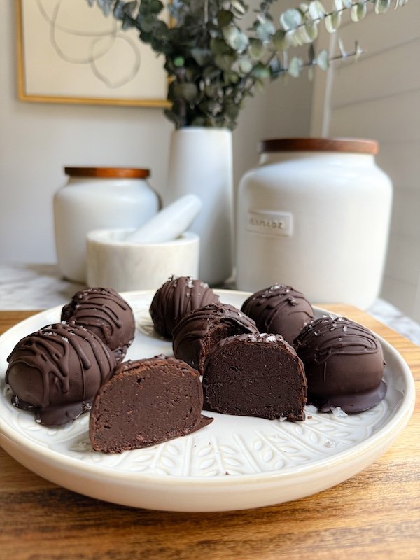 these protein truffles are deeply chocolatey, rich, and not overly sweet.