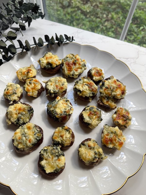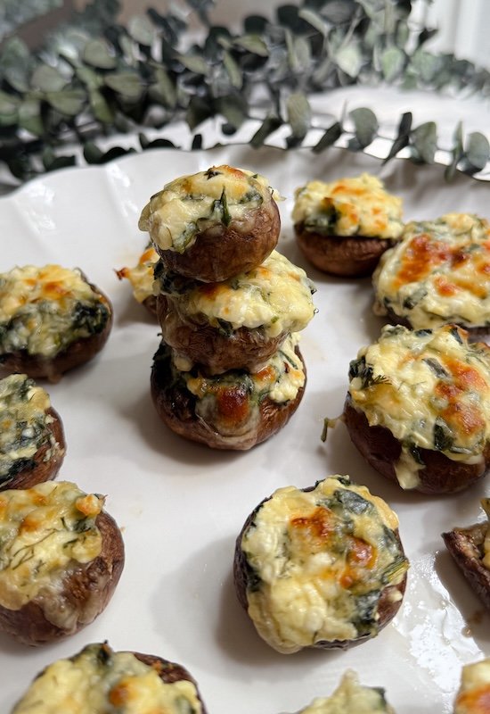 this time, we’re skipping the phyllo but keeping everything we love about the classic and stuffing it into tender cremini mushrooms for the ultimate party or dinner side.