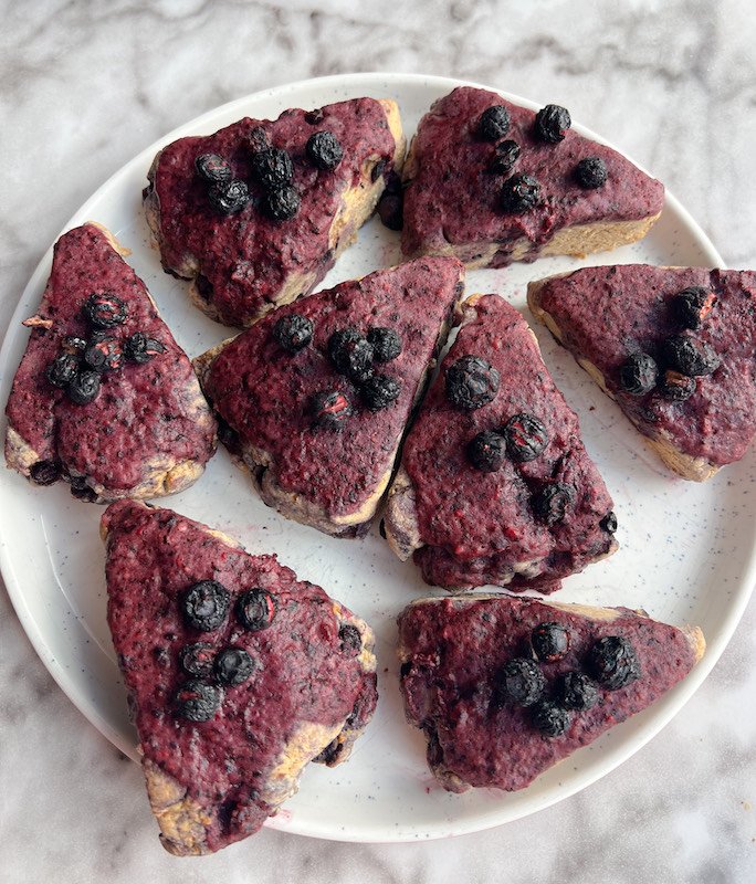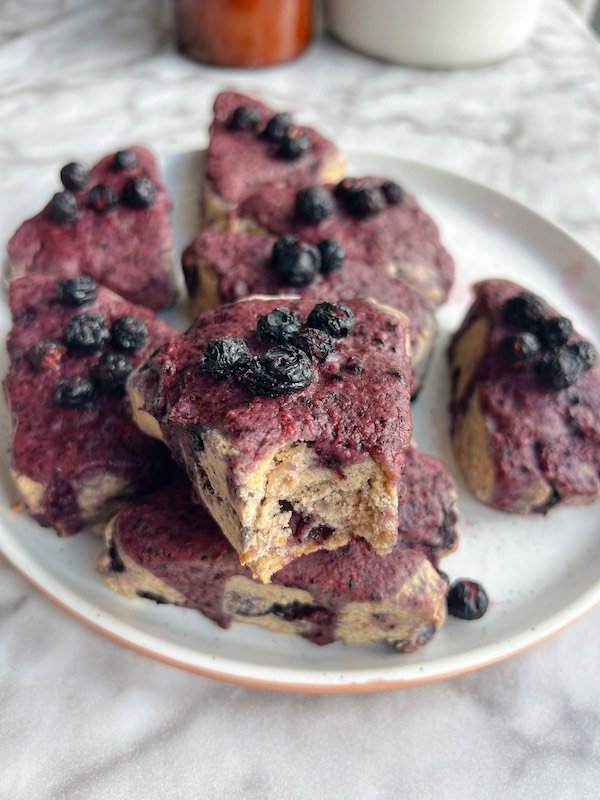 finished with a vibrant blueberry glaze, these scones are perfect for breakfast, a snack, or even dessert!