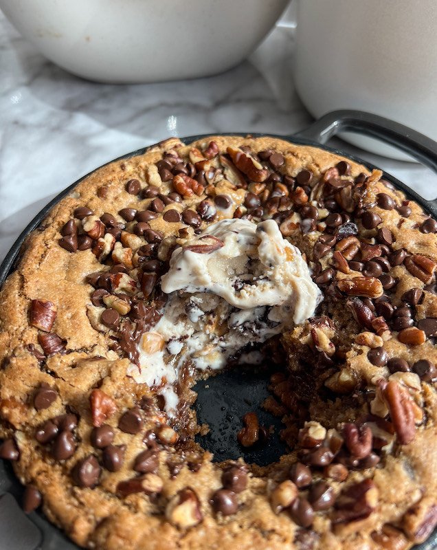 whether you’re sharing this chocolate chip pecan cookie skillet with loved ones or savoring it all to yourself, it’s a dessert worth making (and remaking). don’t forget the ice cream!
