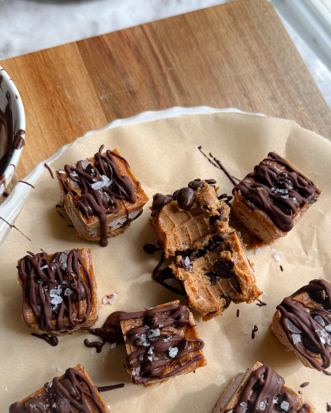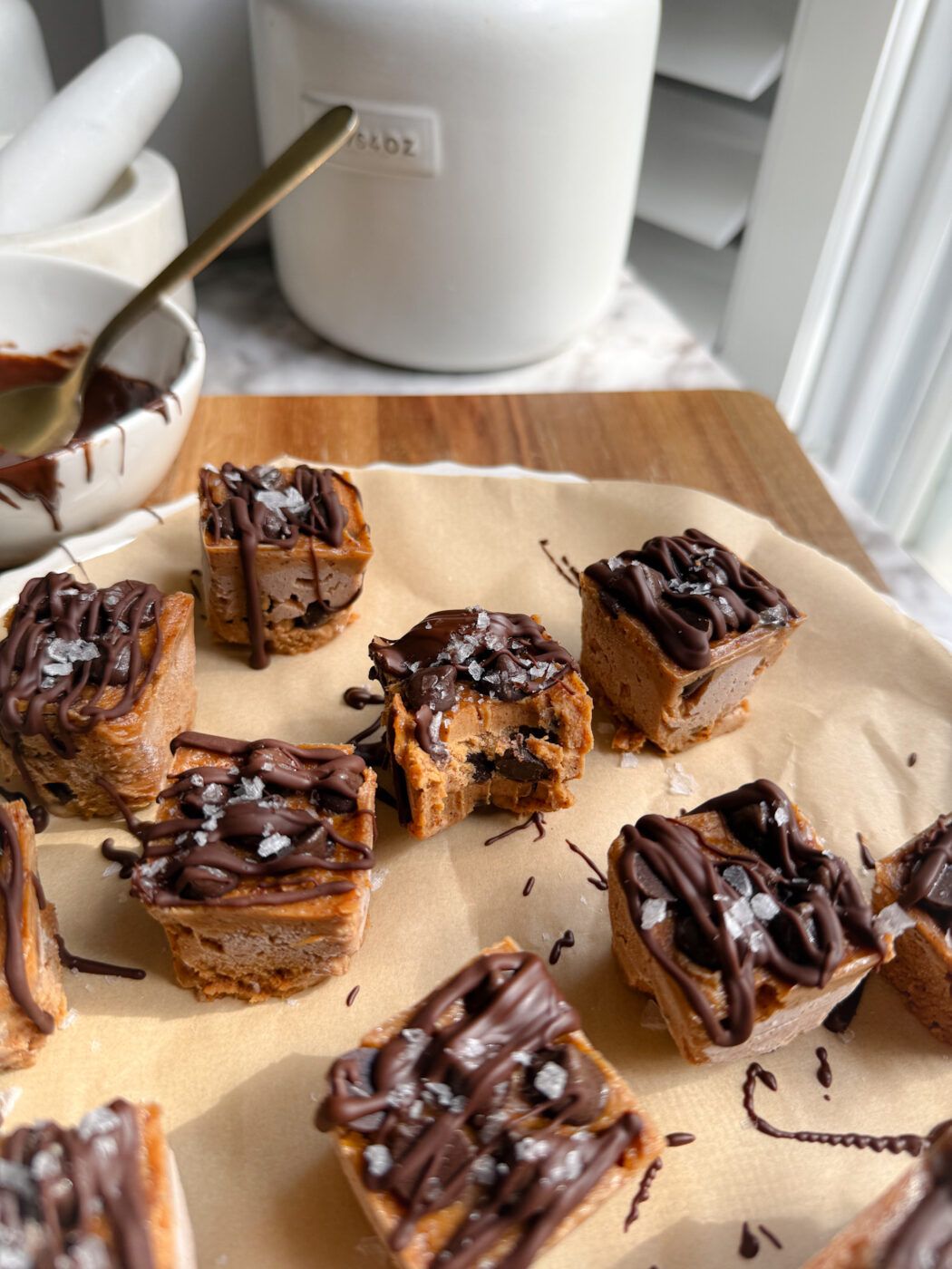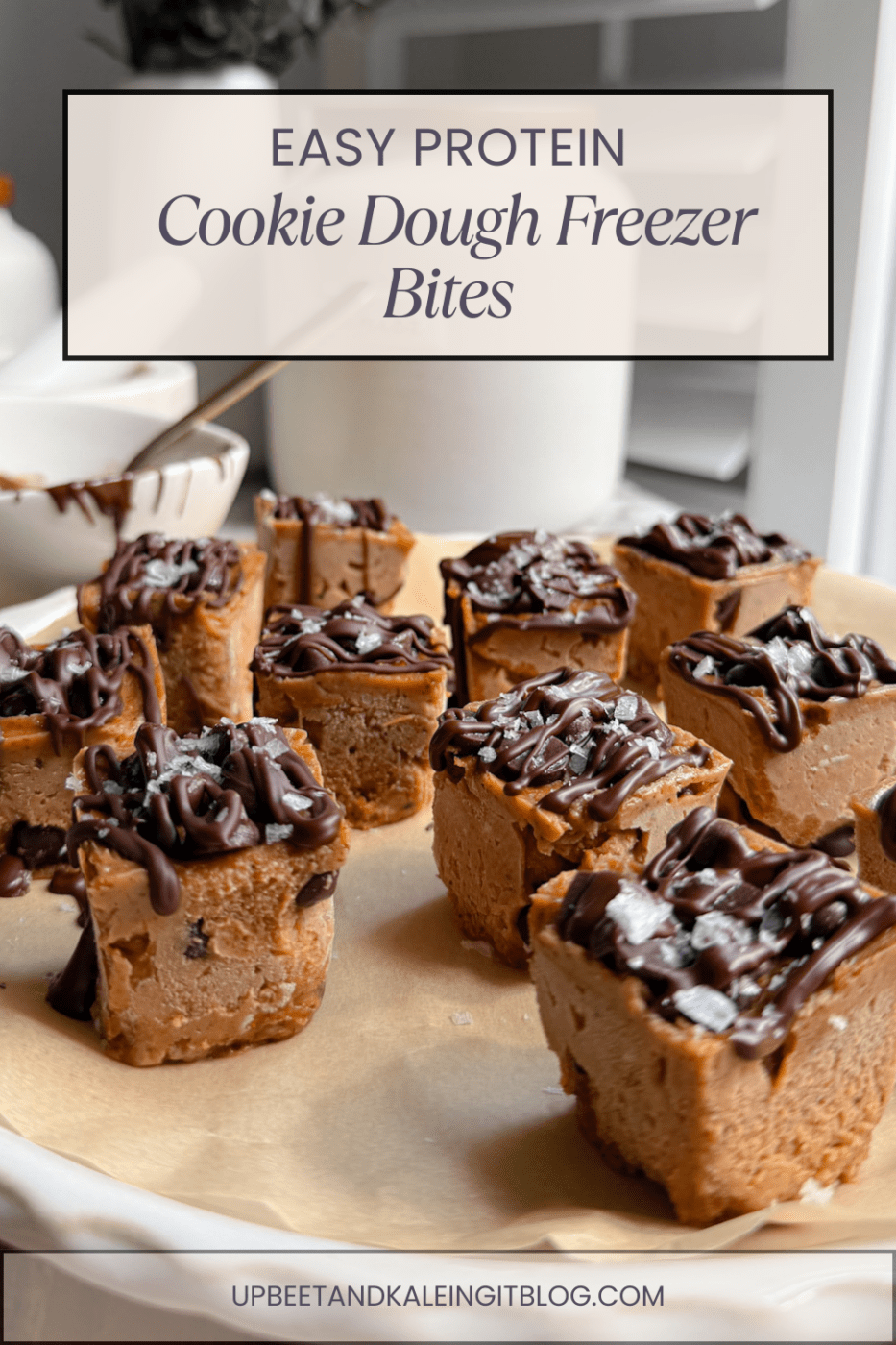 they’re made with simple ingredients like greek yogurt, nut butter, protein powder, and chocolate chips, and they freeze beautifully into rich, fudge-like bites that taste indulgent but still feel nourishing.
