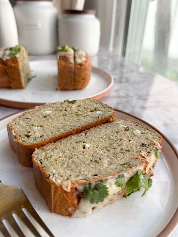pair a slice or two of this loaf with a big side salad, some roasted veggies, or a dollop of hummus or tzatziki.
