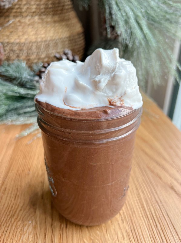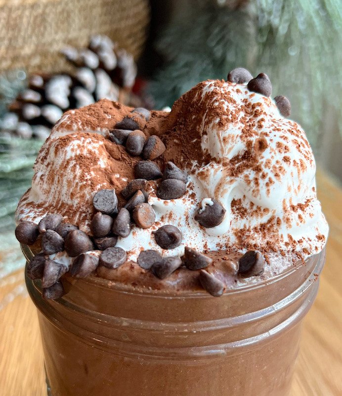 - top with vegan whipped cream or yogurt: finish off your epic protein frozen hot chocolate by topping each glass with vegan whipped cream or a dollop of dairy-free yogurt.