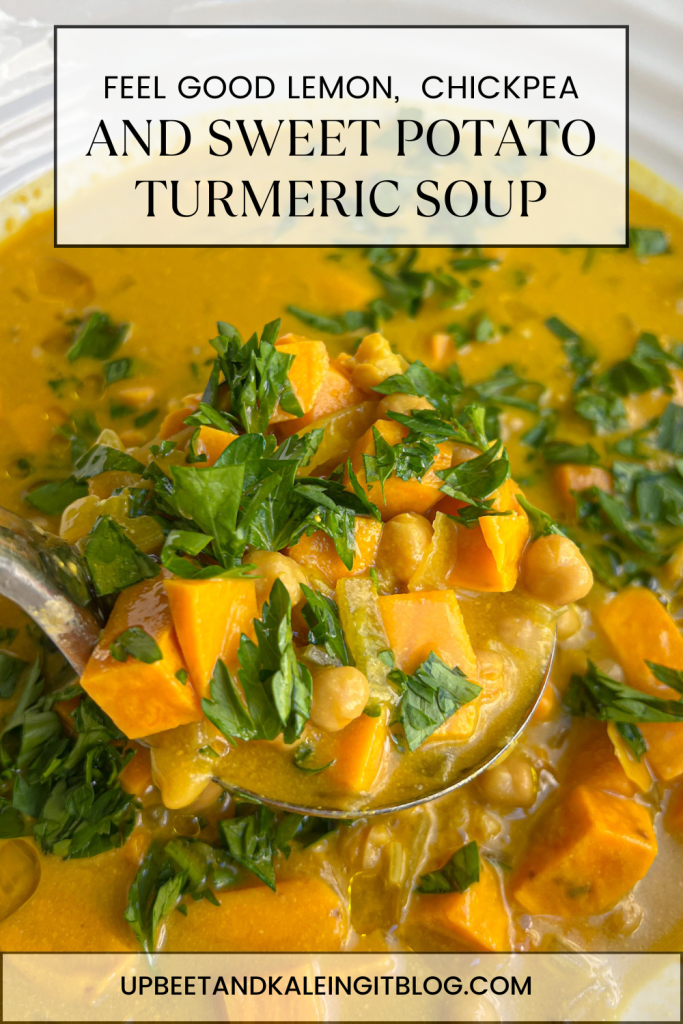 feel good lemon, chickpea, and sweet potato turmeric soup: a nourishing bowl of goodness