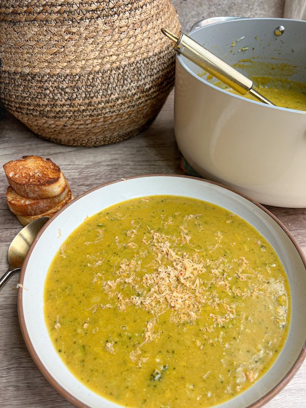 riced broccoli adds a lovely texture to the soup and ensures every spoonful is packed with nutritious goodness.