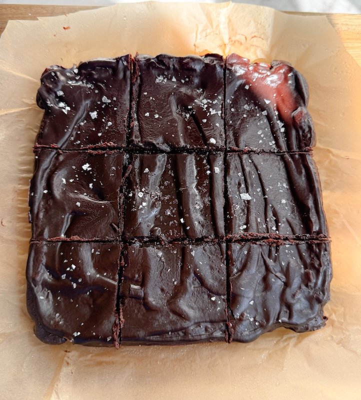 it’s glossy, rich, and sets into the perfect thin chocolate layer once it cools. it’s like a bakery brownie, but made with simple, real ingredients.
