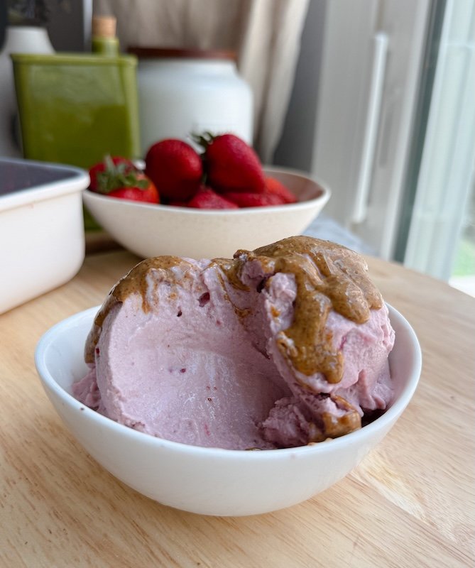 it’s like a cross between real ice cream and a protein-packed strawberry milkshake—cool, thick, and satisfying.