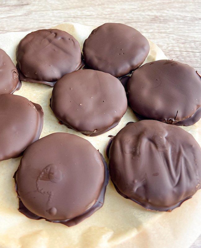 - allow the cookies to freeze for about 30 minutes, or until the chocolate coating has hardened.