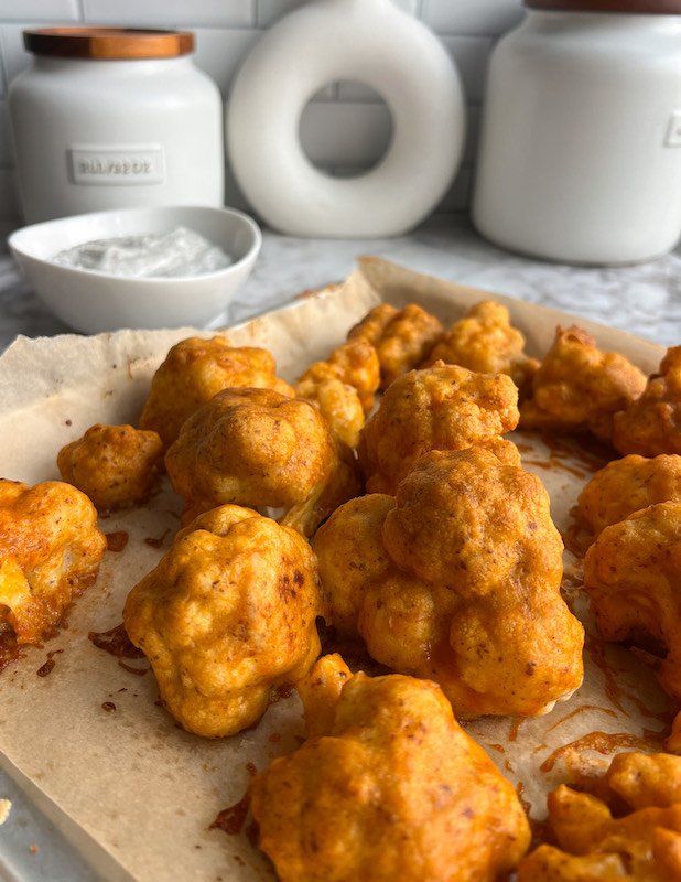 • serve the buffalo cauliflower wings hot with the plant-based ranch on the side for dipping. enjoy!