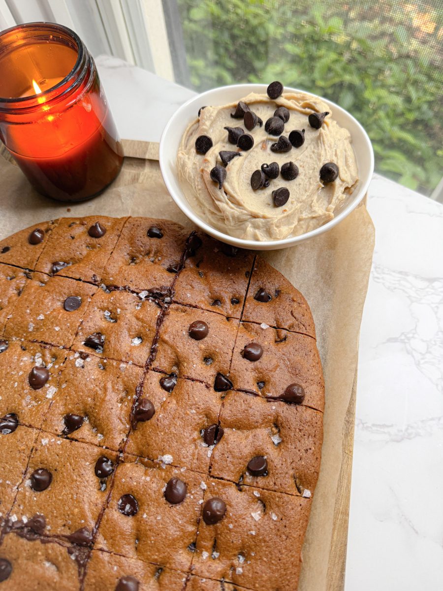 bake the cookies, slice into squares, mix the dip, and you’re done. it’s one of those recipes that looks impressive but takes very little actual work.