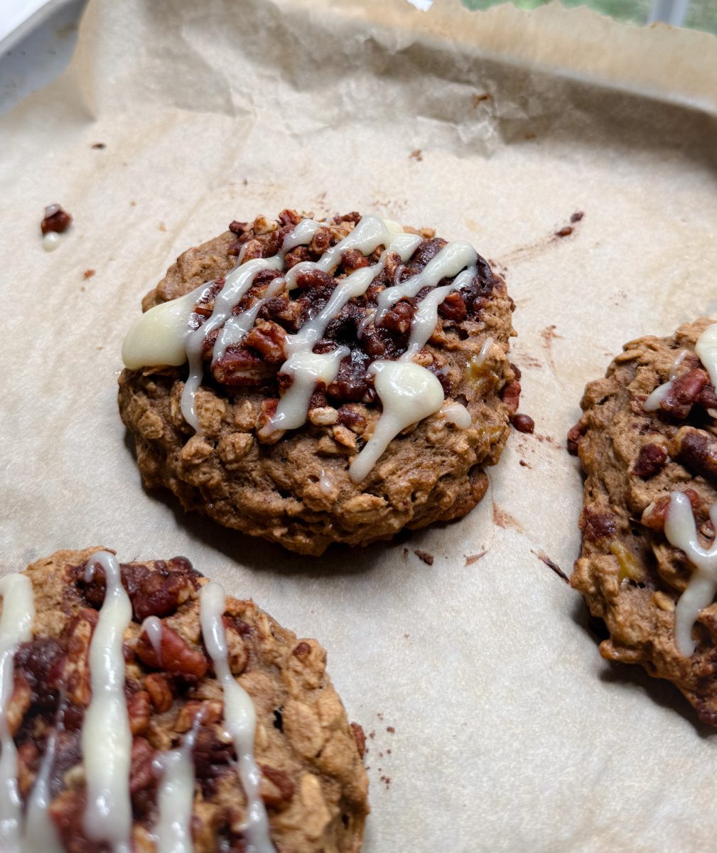 they’re soft and hearty from oats and oat flour, naturally sweetened with banana and coconut sugar, and finished with a crunchy cinnamon sugar topping and cream cheese glaze.