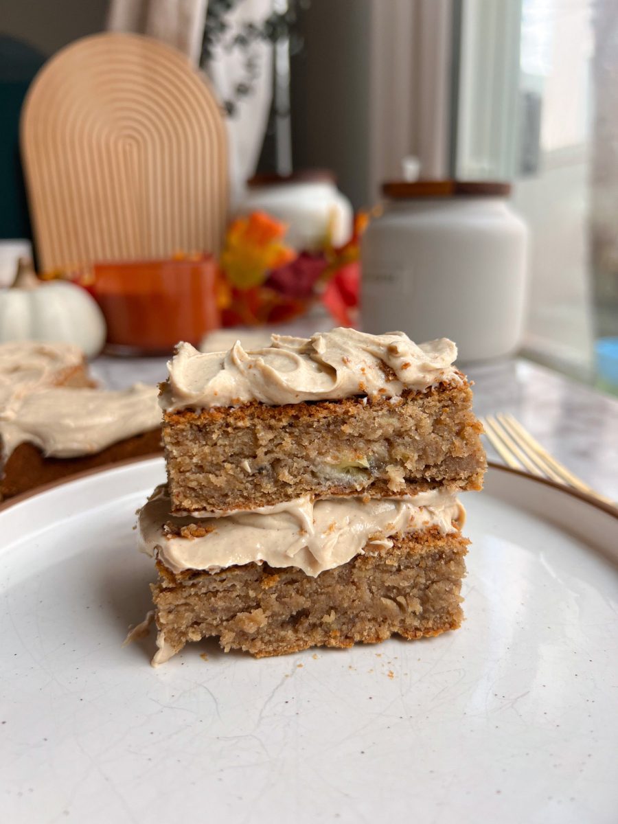 the frosting balances the savory notes in the cake while keeping everything light and delicious.