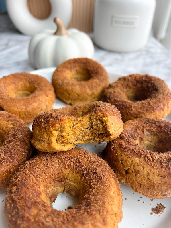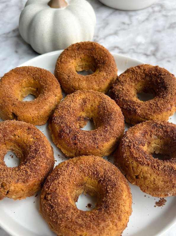 think of them as the perfect fusion of a classic pumpkin cinnamon sugar donut with a healthier twist.