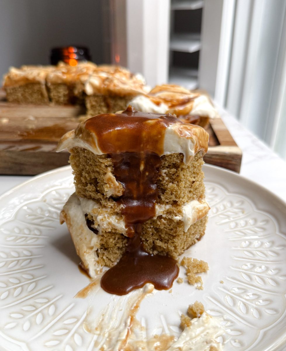 the tangy cream cheese frosting pairs beautifully with the subtle nuttiness of the cake, and the miso caramel drizzle takes it over the top with its sweet-salty-umami magic.
