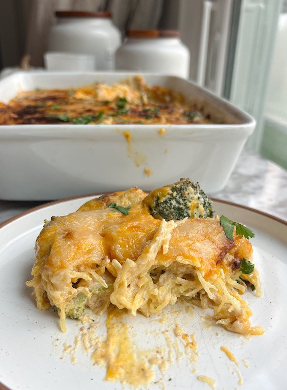 if you’re looking for a comforting dish that doesn’t make your tummy feel terrible afterwards, this healthy and cozy broccoli cheddar spaghetti squash bake is the perfect answer!
