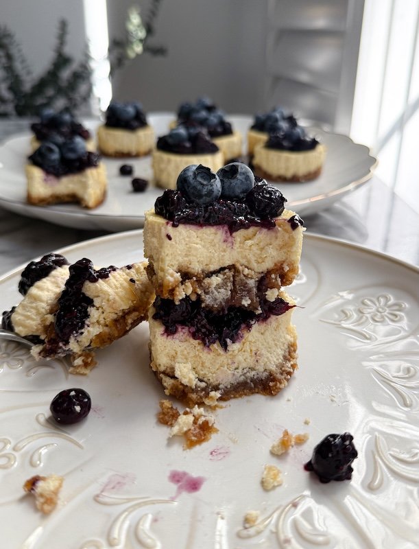 Healthy Lower Carb Blueberry Cheesecake Bites