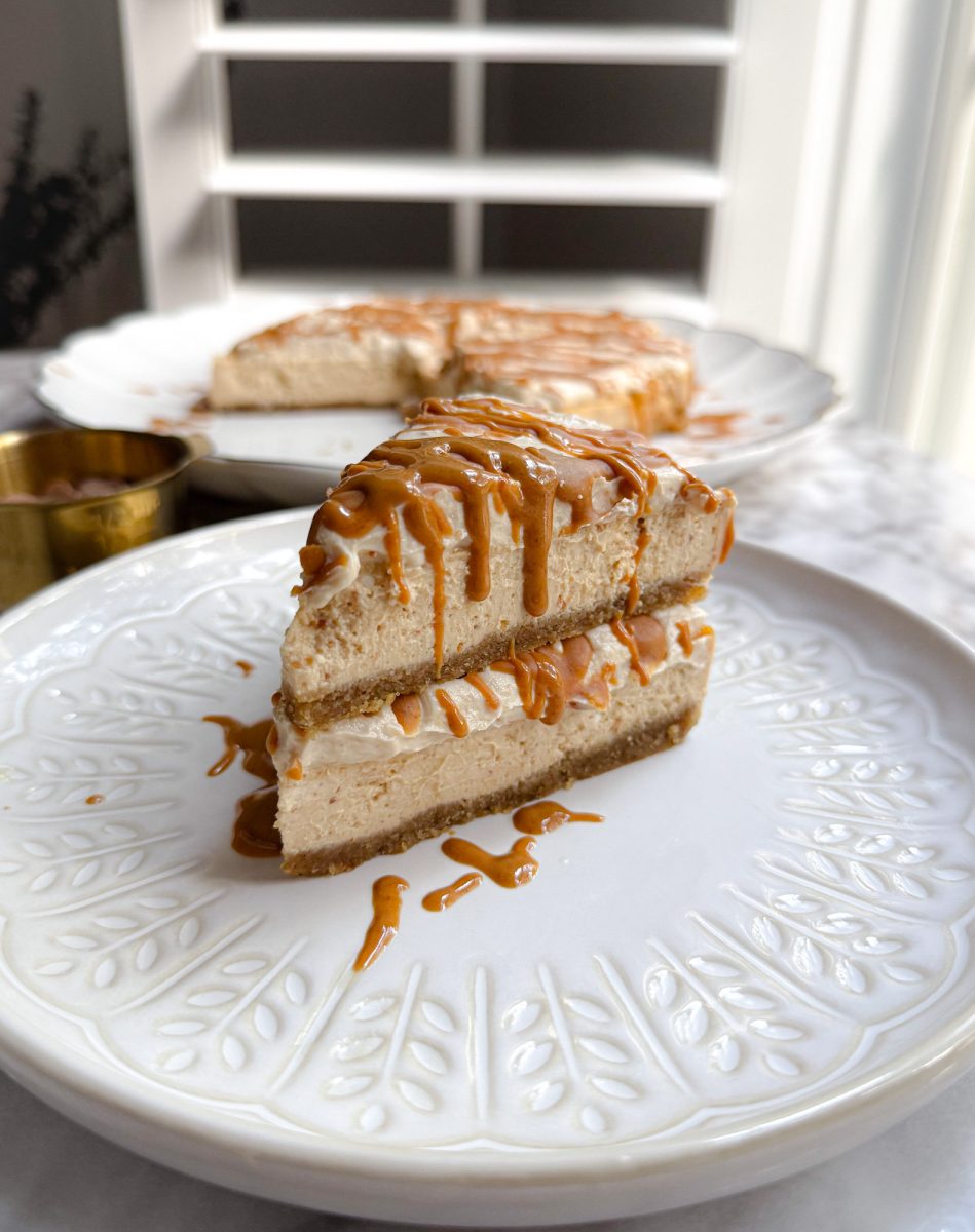 this cheesecake is intentionally lightly sweet, letting the peanut butter be the star instead of masking it with sugar.
