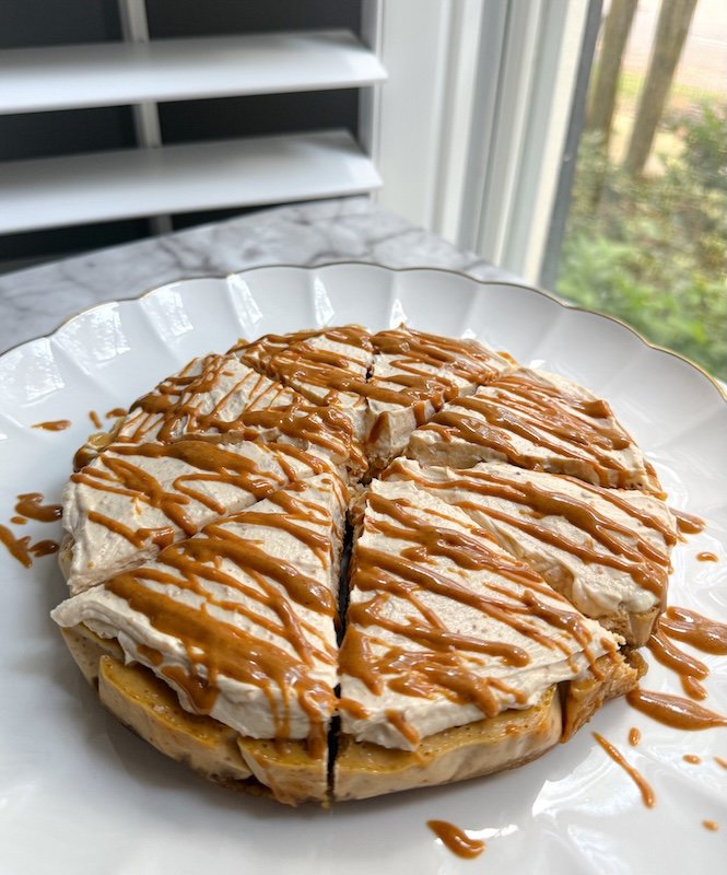 the whipped peanut butter greek yogurt topping adds a light, fluffy finish that makes each bite feel extra special without weighing it down.