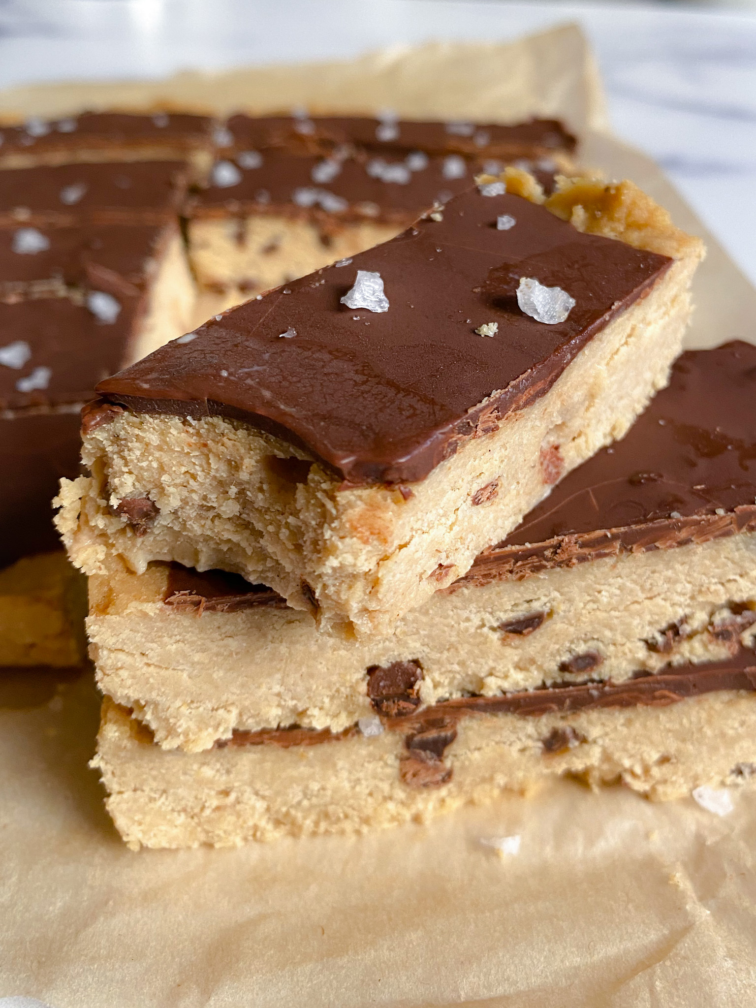 some sea salt on top is kind of a must for me but feel free to omit it of course. go easy on it if you do add sea salt because the bars aren’t super sweet like i said.