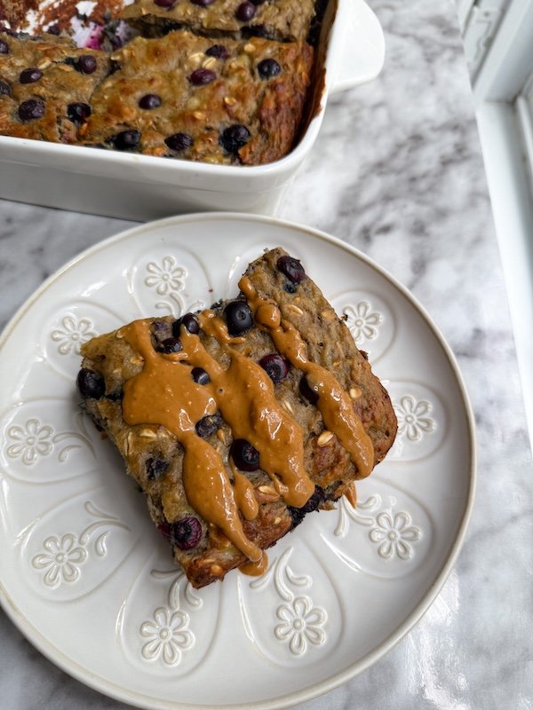 High Protein Banana Bread Blueberry Baked Oatmeal