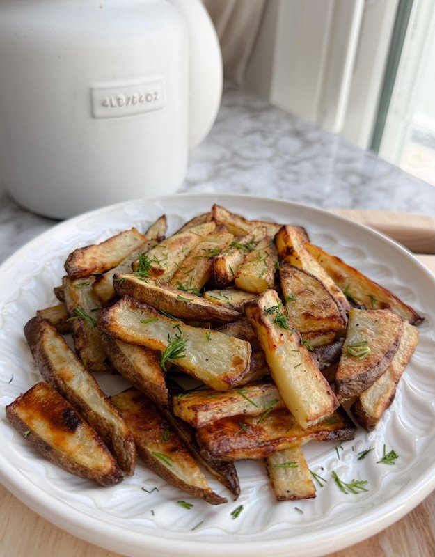 - serve: drizzle with a little olive oil and sprinkle more dill on top if desired. serve with hot, crispy homemade fries.