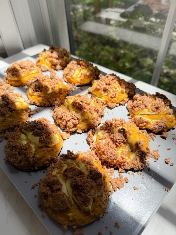 the taste is the best of both worlds: sweet and warmly spiced like a classic pumpkin muffin, but with that tangy, creamy contrast from the cream cheese that makes each bite extra indulgent.