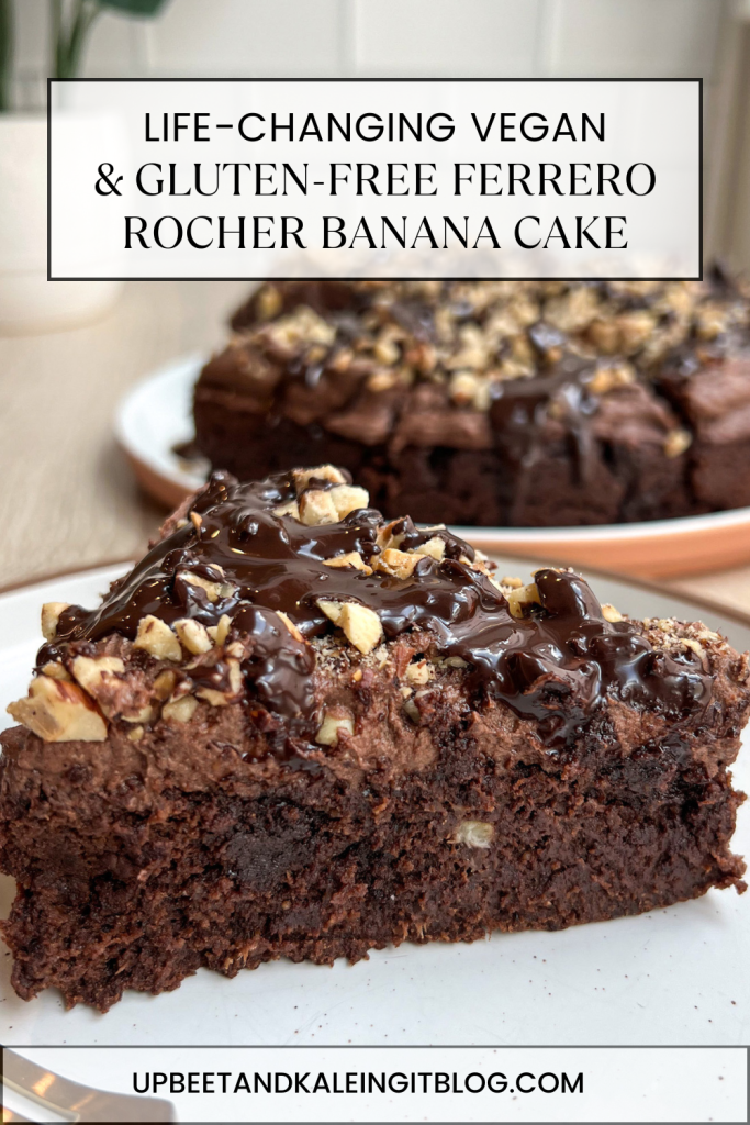 if you’re a fan of ferrero rocher chocolates, you’re going to fall in love with this vegan and gluten-free ferrero rocher banana cake.