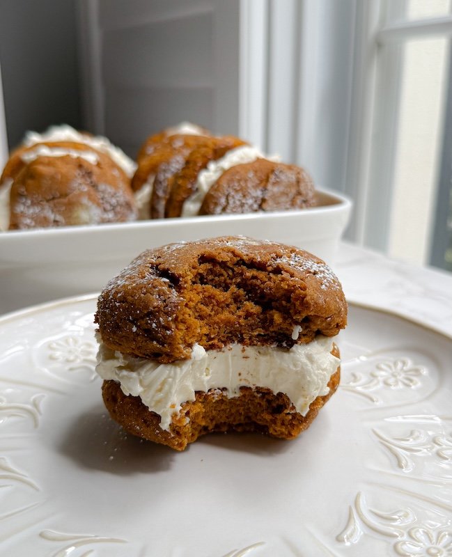 traditional whoopie pies are usually loaded with sugar and heavy fillings, but this version is a little more balanced.