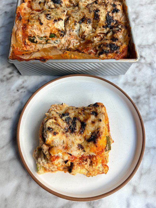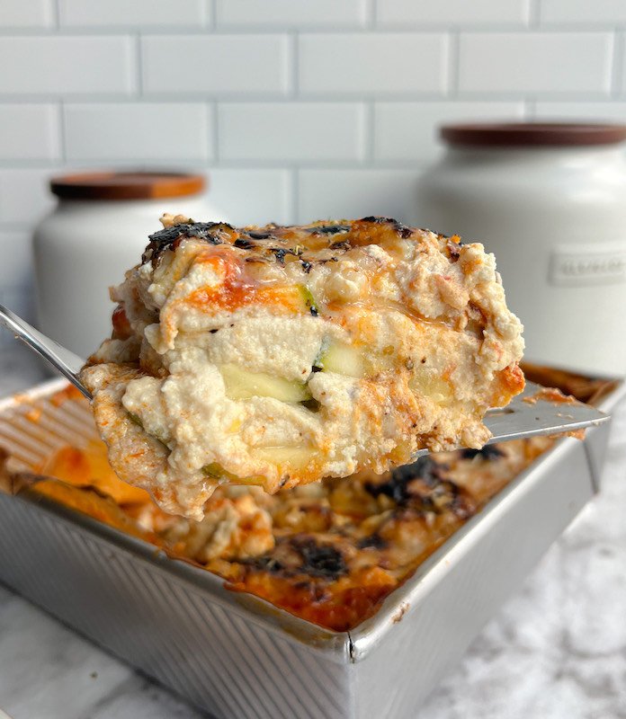 this low-carb plant-based protein-packed zucchini lasagna has everything you love about the classic dish—layers of flavor, a creamy filling, and a hearty marinara—without the carb content.