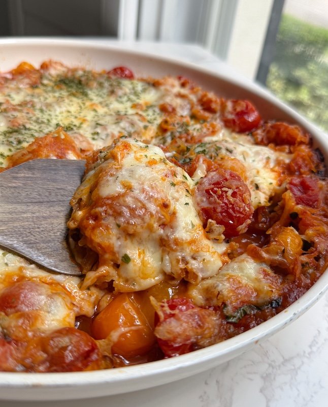 if you love the flavors of classic margherita pizza but want something lighter, more nourishing, and veggie-packed, this margherita pizza inspired spaghetti squash bake is going to be your new go-to.