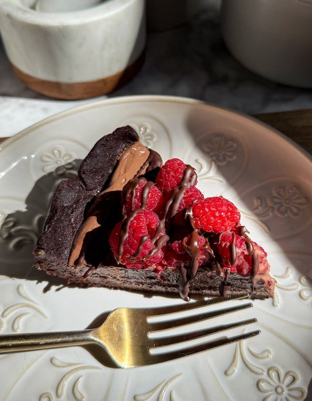 the fresh raspberries on top cut through the richness perfectly and make every bite feel balanced instead of heavy.