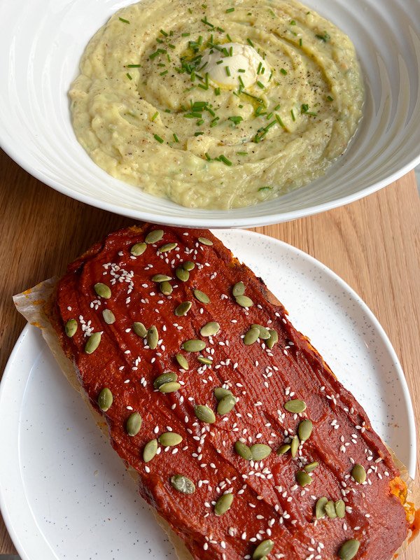 Miso Chickpea Loaf and Chive Mashed Potatoes