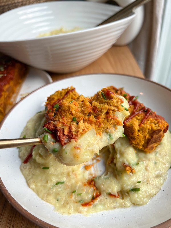 Miso Chickpea Loaf and Chives Mashed Potatoes