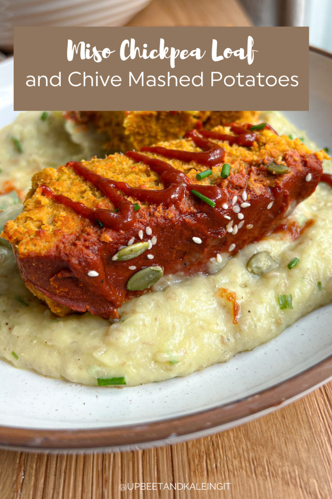 welcome to a cozy and flavorful meal featuring an incredible miso chickpea loaf paired with vegan chive mashed potatoes.